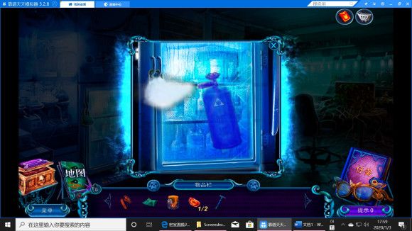 71、、透明仪器柜,用氮气冷冻锁,用锤子砸掉锁,打开,找到提示中的器材,最后得到除锈剂。