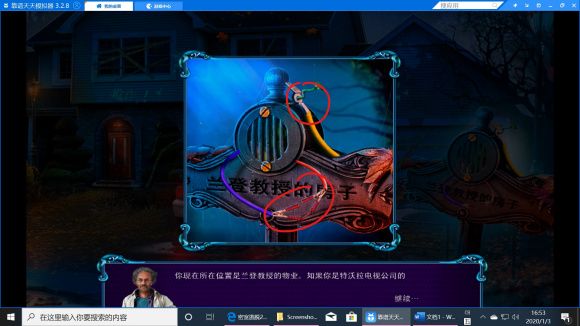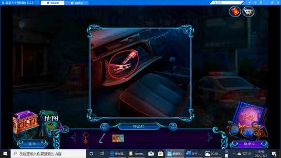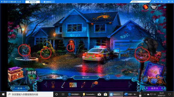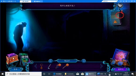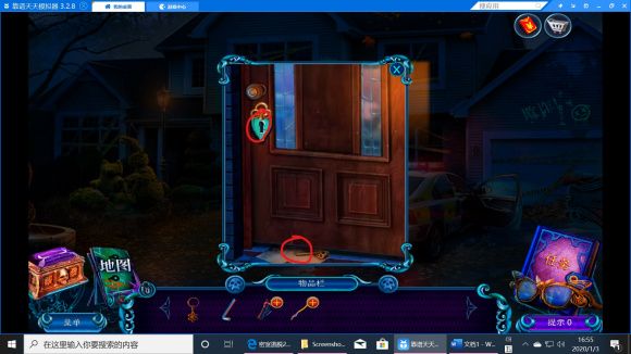 55、大衣架,拉链头安上钥匙扣,拉开拉链,找到电池(与手电筒组合,得手电筒)、螺丝。56、沙发底,捡皮带,沙发坐垫下找到笔记本,进入幻境,提示去实验室,翻看笔记本最后一页,得到箱子徽章1/2。用手电筒照明,找到手套、有只可爱的狗狗。