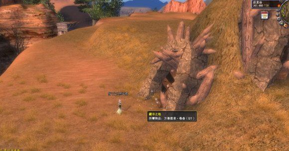 集齐三本书再去找吉化,然后让你去杀5只绝地灵狐 杀完灵狐交完任务之后让你去找看护族人 狰狞,狰狞会让你挖图二的绿色台子,挖完会出现一只小怪,不用担心打不过,这个怪不会还手的 老友网www.andlaou.com免费为你分享