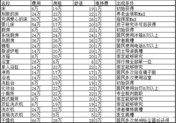 其他解锁家具的方式: