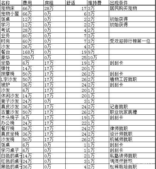 家具一览及其获取方式