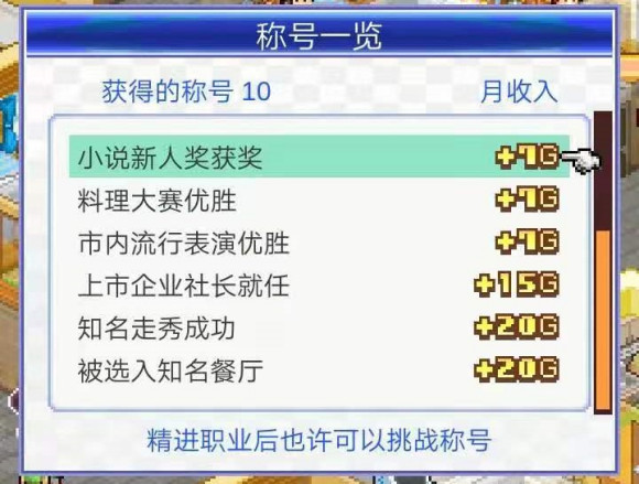 通过住民挑战成功获得称号,得到一个称号可以增加5—20不等的收入。