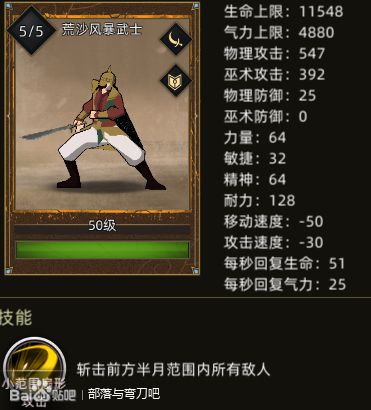 荒沙住民 150钱 - 荒沙风暴武士 950钱,500铁,50玉