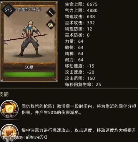 雄鹰农夫 150钱 - 雄鹰亲卫枪兵 850钱,300铁,350木,30玉