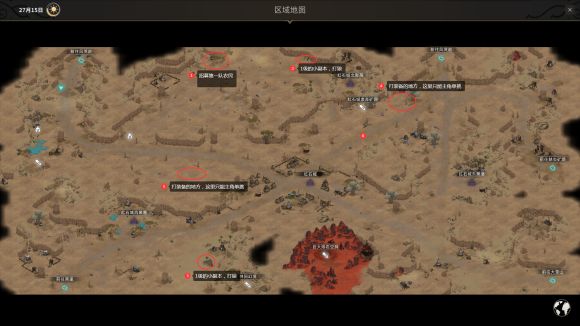 3、②的地方,就是一个小副本,这个时候,你选别打,打路上的强盗来升级,(强盗头上的名字,会变成暗红,这就说明,你打他,99%会赢)然后就这样升级,升到2-3级,就可以去打②的地方。