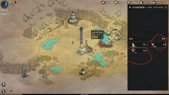 6、现在你可以回到红石谷。去红石城、红石东西北三个聚落去做任务,获得金币,和好感度!拿西聚落来说,点击帐篷之后,会出现右边的界面,这个时候,你点主事(红石城也一样,找主事接任务)。注意:聚落做完主事的任务一次。 你就可以回来,点村长,他会给你提供一队部队,让你够买。举一反三哈! 东部、西部、北部也一样,只要你做了一次任务,你就可以瞬间多了三个队伍。(红石城这样的主城是不能获得队伍的。)