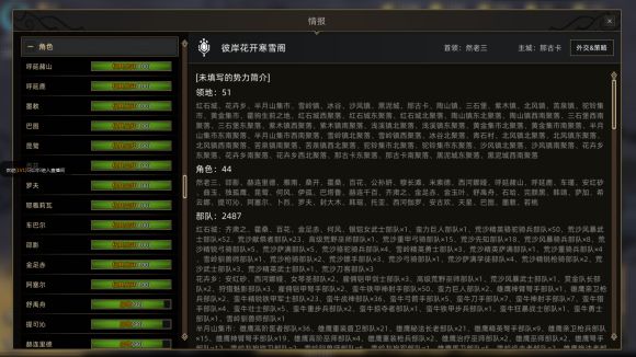 10、在红石城这一类的城镇,你会发现有其他NPC。其他NPC,在这个游戏里,你是可以招募的。NPC名字下方是他所在的势力。 若是在野,就证明他没有加入任意一方势力,你和他的好感度高了,就能直接招募了。如果他是有势力的,你也可以拉拢。但是拉拢需要的好感度更多。这里提示下:1月6日更新前。招募的好感度一般是30,拉拢是45. 更新之后我就不知道了。好感度可以在界面右下角【情报】,【情报】的左边往下拉可以看到。 好感度可以通过为这个伙伴(NPC)做任务,或者送礼。送礼后面我会详细说。