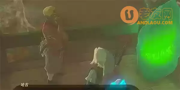 1、我们可以看见现在所在的位置,我们需要与哈吉进行对话,向他购买这块石头。