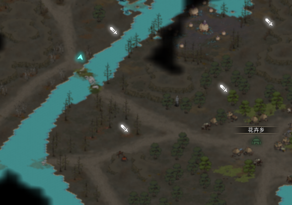 到花卉乡附近往西过河,顺带把右上的战斗点也打了,然后往左下走找擂台,打完给5个天赋点把加
