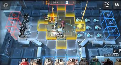 开场左右两侧都会刷怪请注意,我们先上打费的两个,第一行放推王,下面一行的中间放德克萨斯,然后在德克萨斯下面放向上打的拉普兰德。