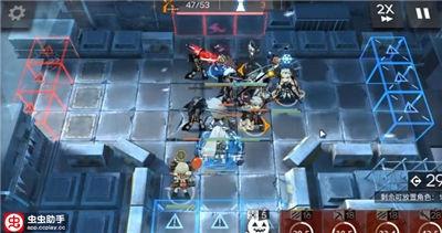 然后在推王后面放置煌,拉普兰德旁边放塞雷娅,向右打。在拉普兰德下面放奶妈,然后上能天使清右侧爆炸虫。清完能天使有可能会暴毙,不过没关系,没暴毙我们也要把她撤掉了……(阿能:???)推王也能撤了,德克萨斯也撤了