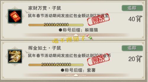 【躲猫猫】成就,要求累计发放20000通宝(同样是累计)