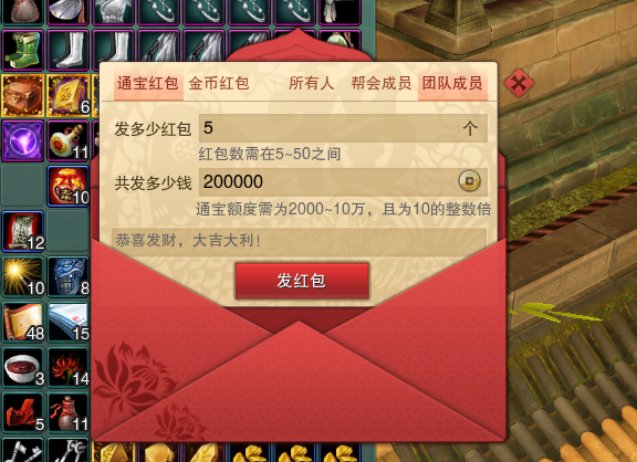 其他发放方式和注意点与金币红包一致,累计发放20000通宝(也就是200块钱)就可以啦