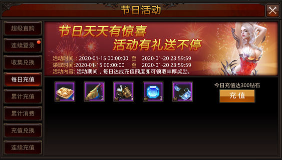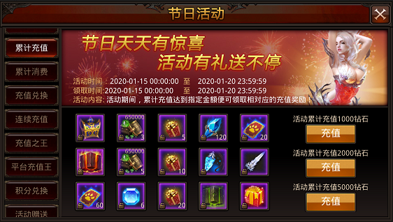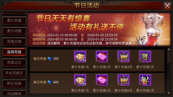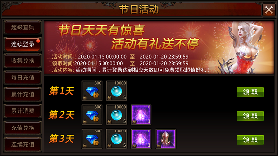 活动内容:活动期间,统计用户登录天数,达到指定天数即可领取奖励。