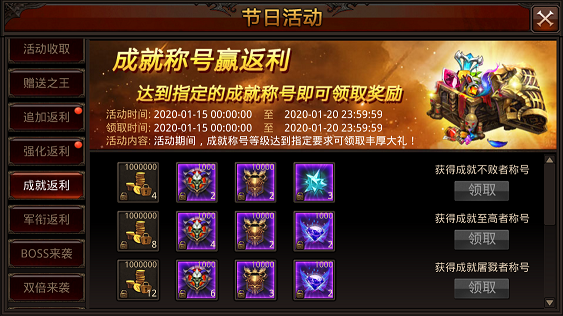 活动内容:活动期间,达到一定等级的成就可领取丰厚大礼。