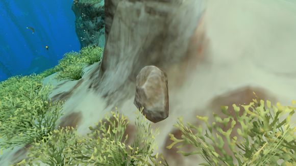 接着在周围仔细搜索一下,应该很容易发现下图所示的石灰岩,点击左键敲碎后可以得到钛和铜,敲出两钛一铜即可,多敲出来的也可以拿着很快就能用到。