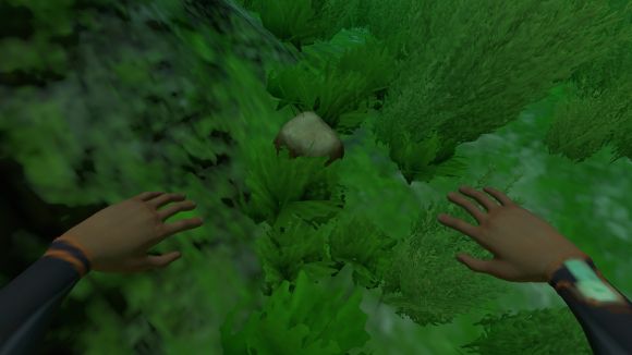然后在绿藻区八九十米的地方,有可能出现如图的砂岩,能敲出金银铅,前期这些东西比较稀缺,可以多拿一些,但至少要拿到一个银矿。而且由于深度较深,要注意好控制氧气,再提示一遍,一氧气能游三米。