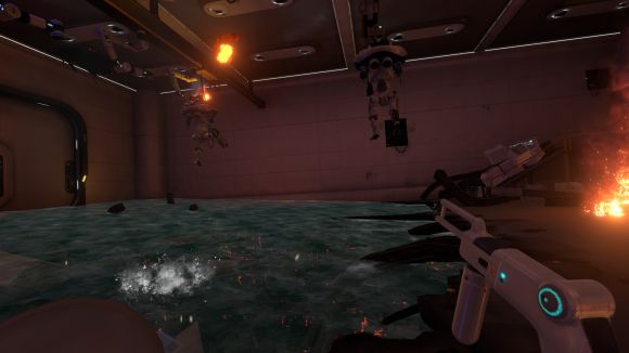进门就能看见天花板上挂着两个海虾号碎片,站在水里就能扫到