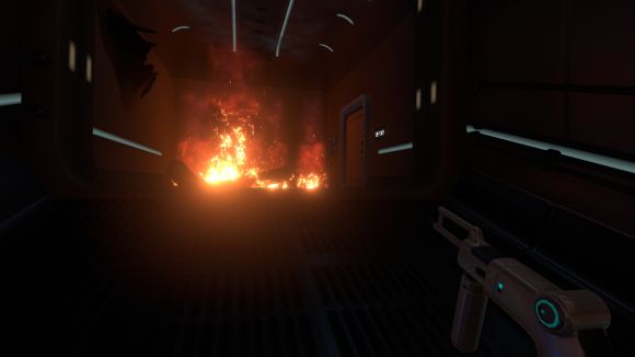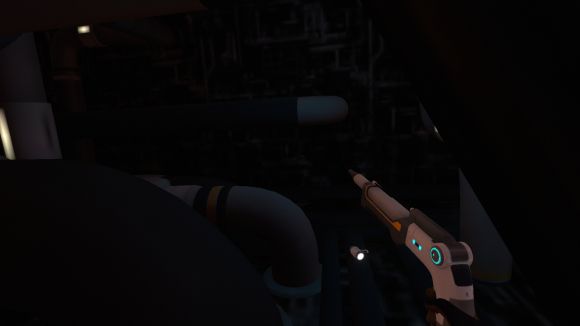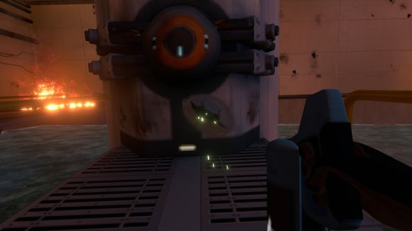 修好引擎后,回到岔路口向右走,遇到一扇损坏的门,用切割器打开。