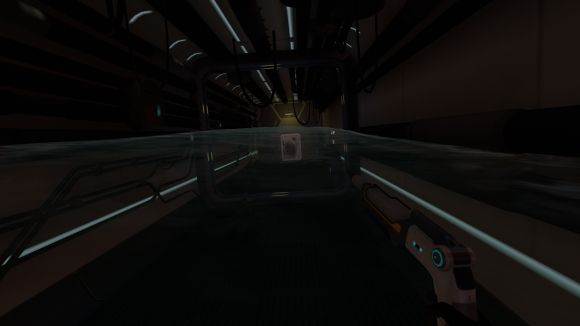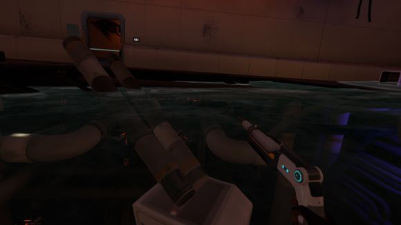 然后向左前方走,浮出水面,再穿过一个门后潜下去。