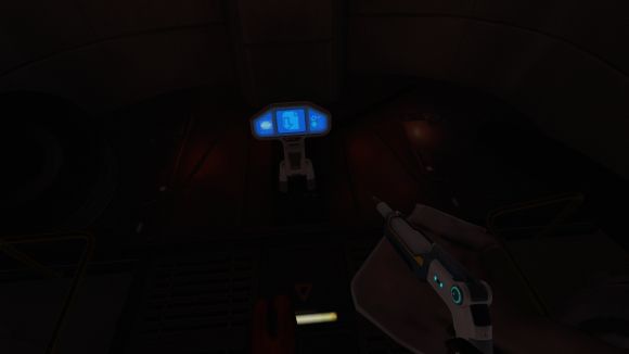 可以看到这样的控制台,转身向后走,切开一个门就能看到实验室,在左侧的PDA里记载着密码,密码是6483