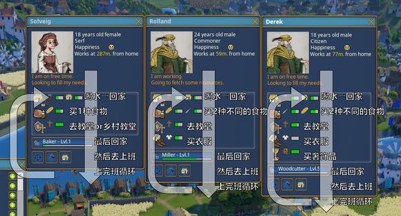 很多玩家玩这款游戏的初衷就是造奇观,造大城堡大教堂,却又被“居民幸福度”这个东西劝退,各种供给不足,原因就在于经济效率不高。楼主探索游戏也将近200小时了,本贴探讨游戏的核心机制:每个村民都会遵从的动作循环,并以此为切入点讲解如何规划城区,从而提升经济的效率,村民衣食无忧奔小康