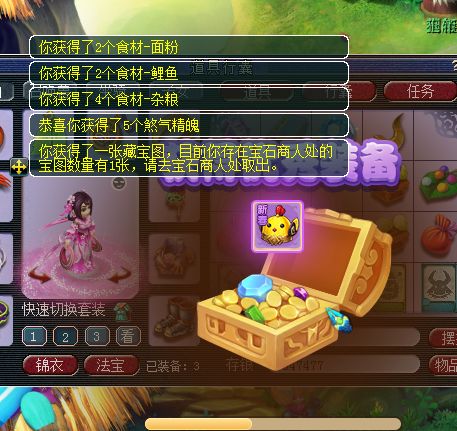 把这三个任务做完去找他会给你一个箱子 里面是200点灵气 和食材 一件装备