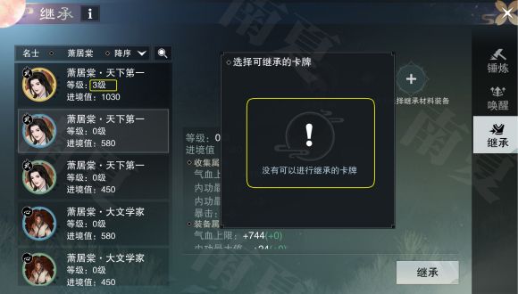 只能从低级卡往高级卡继承,这一点我不知道原本设计就这样,还是bug。