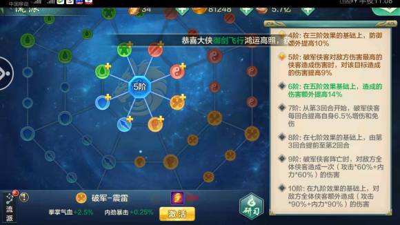 “破釜沉舟”:请注意第7第8阶的效果,进一步给了他憋气的理由。巧合的是,正好有本新天书,异常契合“破釜沉舟”,前3回合每回合将三分之一减伤按1比1.25比例转成增伤,因此,这本天书就是给希望打一个防守反击的大侠提供对应天书,从目前情况分析,实战效果应该会略强于明察。当然,这本天书的好处在于可以大胆让他站到AOE覆盖区域位置,例如你有个100%减伤,吃上一个奥义,不一定死,然后3回合后转化为了125%增伤正好用了打反击。