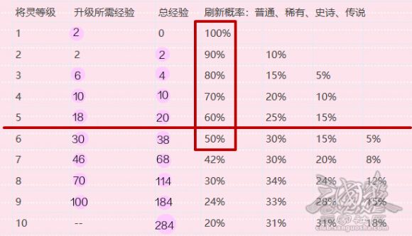 我们可以看到,每一次升级将灵等级,都是对我们获取3星不利的,不仅要消耗大量的金币资源,而且蓝卡的概率也在快速下降。不过,我们也要注意两点:1)6人口是一个分割线,达到6人口才能在搜索栏中见到红卡,而之后升级等级红卡提升概率都没有显著提升。2)魏国人的核心7魏国需要7人口,这也是我们需要纳入考量的范畴。