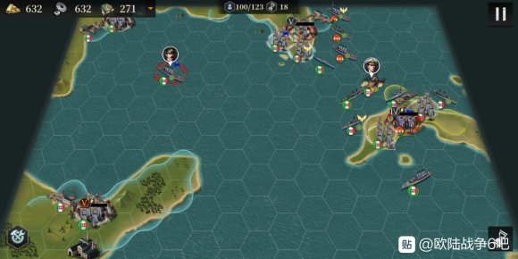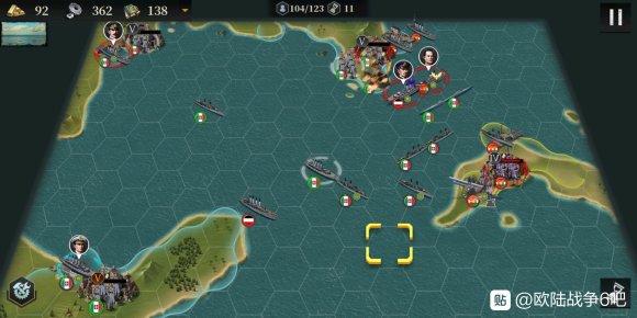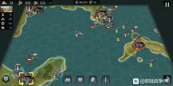 上回合修了奇观,步兵准备登陆,后面出的船炸城