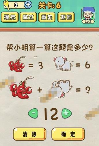 帮小明算一算这题是多少是《脑力达人全民烧脑游戏》第6关的问题,很多网友不知道答案是什么,下面小编给大家带来脑力达人全民烧脑游戏第6关攻略。 问题:帮小明算一算这题是多少? 答案:3+9=12。 老友网www.andlaou.com免费为你分享
