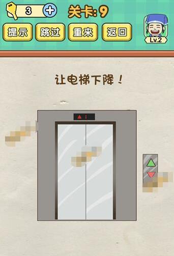 让电梯下降是《脑力达人全民烧脑游戏》第9关的问题,很多网友不知道答案是什么,下面小编给大家带来脑力达人全民烧脑游戏第9关攻略。 问题:让电梯下降? 答案:拖动电梯向下滑。 老友网www.andlaou.com免费为你分享