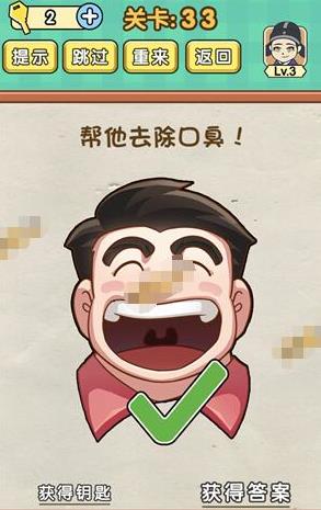 帮他去除口臭是《脑力达人全民烧脑游戏》第33关的问题,很多网友不知道答案是什么,下面小编给大家带来脑力达人全民烧脑游戏第33关攻略。 问题:帮他去除口臭? 答案:用手指抹去牙齿上的脏东西。 老友网www.andlaou.com免费为你分享