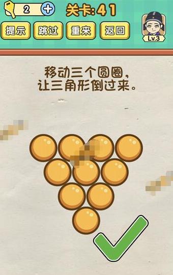 移动三个圆圈让三角形倒过来是《脑力达人全民烧脑游戏》第41关的问题,很多网友不知道答案是什么,下面小编给大家带来脑力达人全民烧脑游戏第41关攻略。