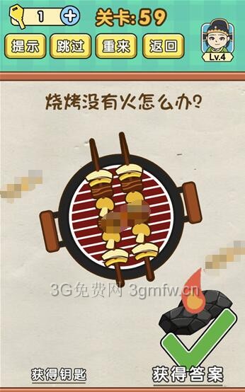 烧烤没有火怎么办是《脑力达人全民烧脑游戏》第59关的问题,很多网友不知道答案是什么,下面小编给大家带来脑力达人全民烧脑游戏第59关攻略。 问题:烧烤没有火怎么办? 答案:用手摩擦右下角的石块。 老友网www.andlaou.com免费为你分享