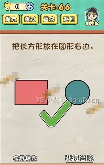 把长方形放在圆形右边是《脑力达人全民烧脑游戏》第66关的问题,很多网友不知道答案是什么,下面小编给大家带来脑力达人全民烧脑游戏第66关攻略。 问题:把长方形放在圆形右边? 答案:将手机倒立过来。 老友网www.andlaou.com免费为你分享