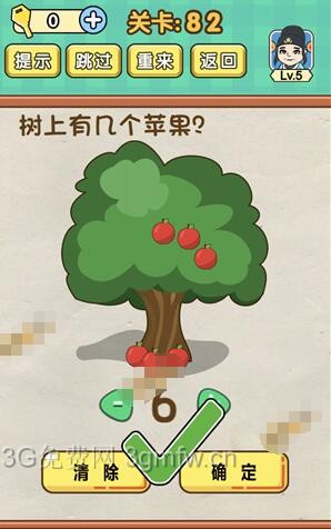 树上有几个苹果是《脑力达人全民烧脑游戏》第82关的问题,很多网友不知道答案是什么,下面小编给大家带来脑力达人全民烧脑游戏第82关攻略。 问题:树上有几个苹果? 答案:摇晃手机。 老友网www.andlaou.com免费为你分享