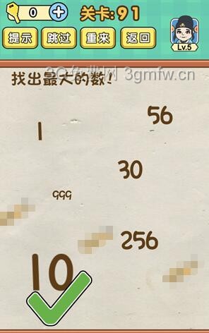 找出最大的数是《脑力达人全民烧脑游戏》第91关的问题,很多网友不知道答案是什么,下面小编给大家带来脑力达人全民烧脑游戏第91关攻略。 问题:找出最大的数? 答案:10。 老友网www.andlaou.com免费为你分享