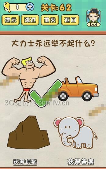大力士永远举不起什么是《脑力达人全民烧脑游戏》第62关的问题,很多网友不知道答案是什么,下面小编给大家带来脑力达人全民烧脑游戏第62关攻略。 问题:大力士永远举不起什么? 答案:当然是大力士自己了。 老友网www.andlaou.com免费为你分享