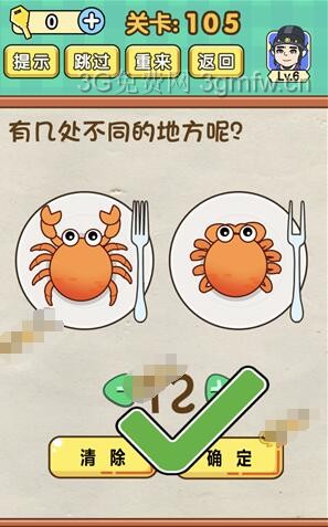 有几处不同的地方呢是《脑力达人全民烧脑游戏》第105关的问题,很多网友不知道答案是什么,下面小编给大家带来脑力达人全民烧脑游戏第105关攻略。 问题:有几处不同的地方呢? 答案:12。 老友网www.andlaou.com免费为你分享