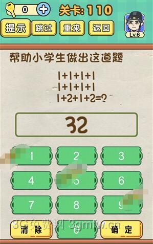 帮助小学生做出这道题:1+1+1+1+1 1+1+1+1+1 1+2+1+2=?是《脑力达人全民烧脑游戏》第110关的问题,很多网友不知道答案是什么,下面小编给大家带来脑力达人全民烧脑游戏第110关攻略。