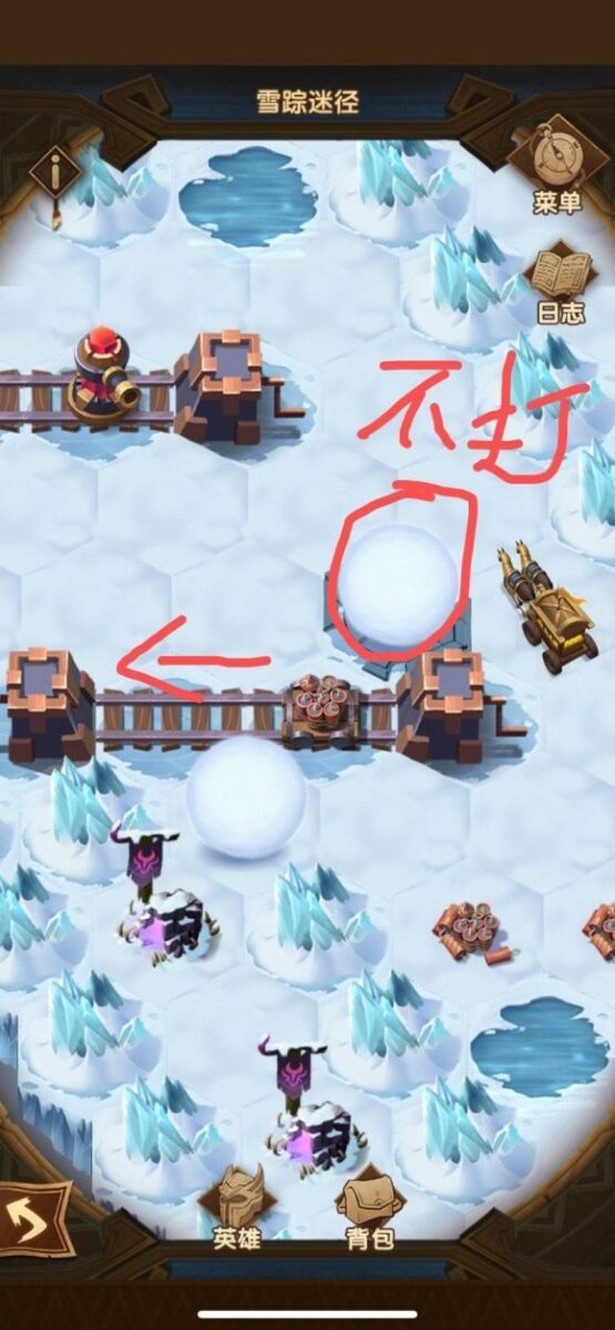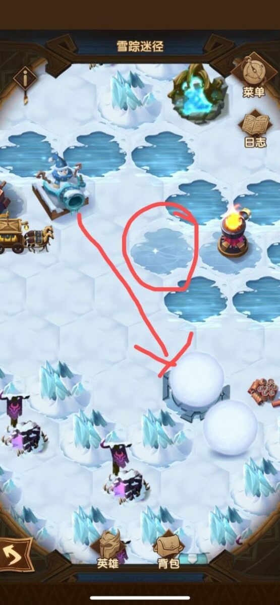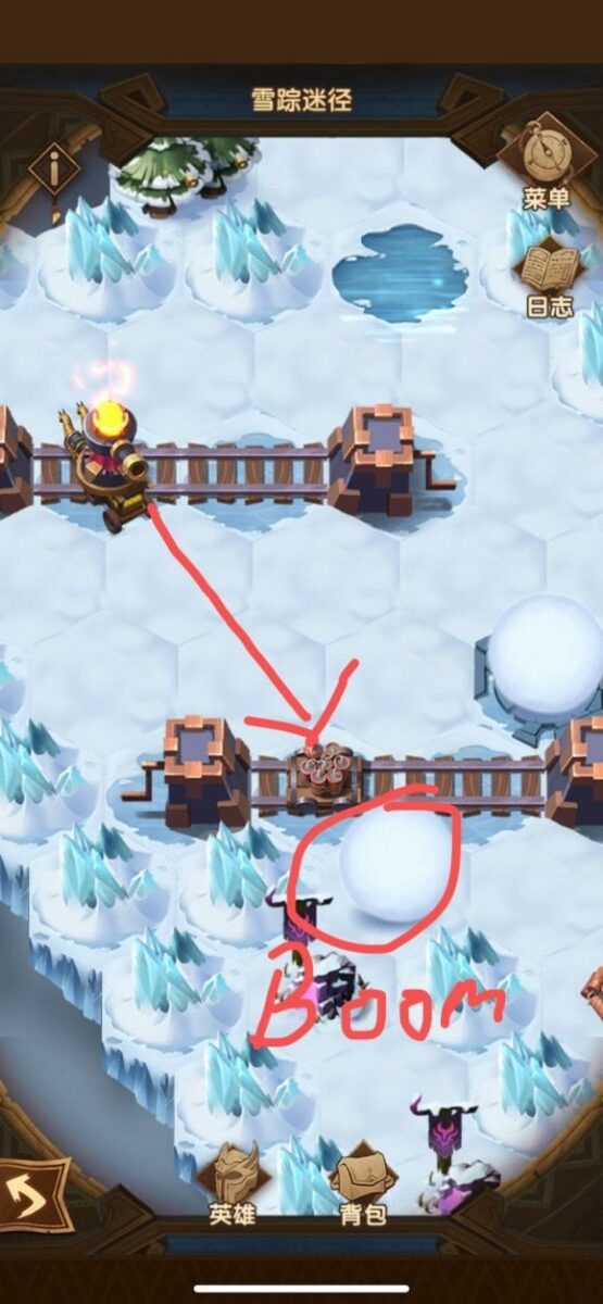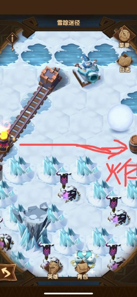 点雪人,把雪球推到机关处,然后中间的火炮就可以点火了