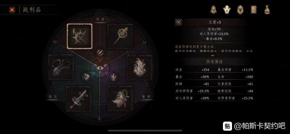 个人评价:攻击、人类伤害(多数boss应该均属人类)、暴击应有尽有,词条造成伤害也能回复少量生命,推图过程中能降低容错率,属于前期最好的伤痕类战利品。