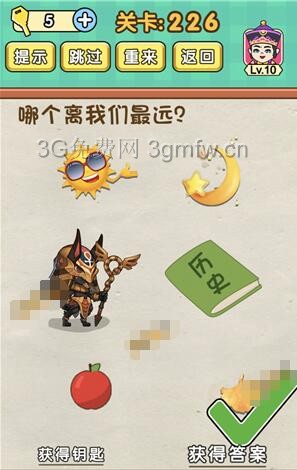 哪个离我们最远是《脑力达人全民烧脑游戏》第226关的问题,很多网友不知道答案是什么,下面小编给大家带来脑力达人全民烧脑游戏第226关攻略。 问题:哪个离我们最远? 答案:枫叶。 老友网www.andlaou.com免费为你分享