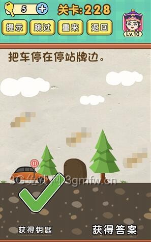 把车停在停站牌边是《脑力达人全民烧脑游戏》第228关的问题,很多网友不知道答案是什么,下面小编给大家带来脑力达人全民烧脑游戏第228关攻略。 问题:把车停在停站牌边? 答案:将站牌直接移到车子旁。 老友网www.andlaou.com免费为你分享