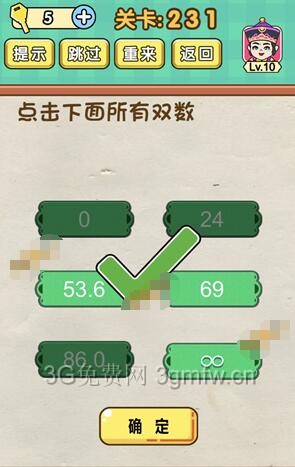 点击下面所有双数是《脑力达人全民烧脑游戏》第231关的问题,很多网友不知道答案是什么,下面小编给大家带来脑力达人全民烧脑游戏第231关攻略。 问题:点击下面所有双数? 答案:0、24、86.0。 老友网www.andlaou.com免费为你分享