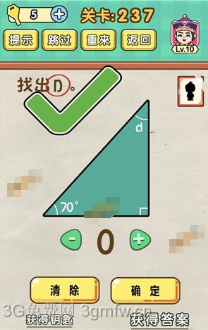 找出D是《脑力达人全民烧脑游戏》第237关的问题,很多网友不知道答案是什么,下面小编给大家带来脑力达人全民烧脑游戏第237关攻略。 问题:找出D? 答案:点击题目中的“D”。 老友网www.andlaou.com免费为你分享