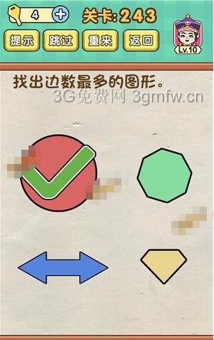 找出边数最多的图形是《脑力达人全民烧脑游戏》第243关的问题,很多网友不知道答案是什么,下面小编给大家带来脑力达人全民烧脑游戏第243关攻略。 问题:找出边数最多的图形? 答案:圆。 老友网www.andlaou.com免费为你分享