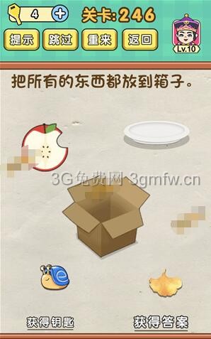 把所有的东西都放到箱子是《脑力达人全民烧脑游戏》第246关的问题,很多网友不知道答案是什么,下面小编给大家带来脑力达人全民烧脑游戏第246关攻略。